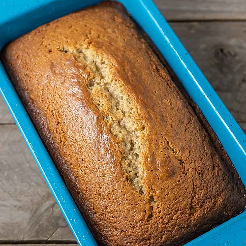 - Pour batter into the prepared loaf pan and bake in the preheated oven for 1 hour, or until the center of the loaf is set.