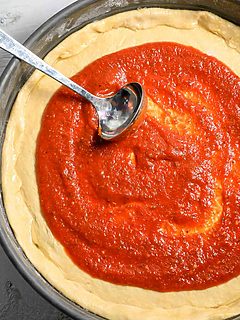 This easy Homemade Deep Dish Pizza is seriously delicious! Fresh homemade pizza dough is topped with mozzarella, pizza sauce and your favorite toppings and is garnished with shredded Parmesan cheese and fresh parsley. You can swap out the toppings for whatever you prefer to eat on your pizza including a meatless version. This recipe makes …