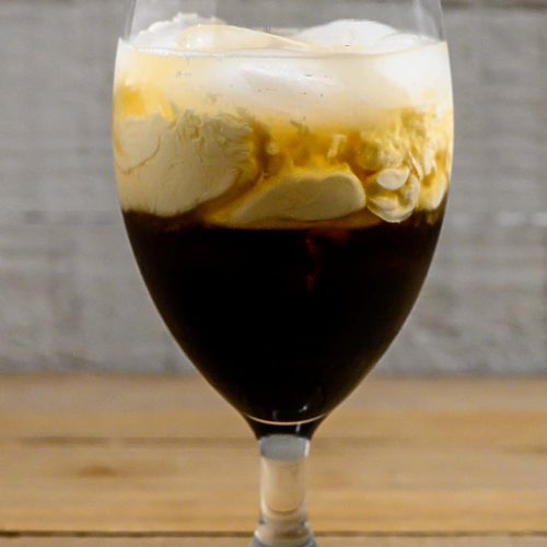 For an even more decadent cocktail, omit the ice cubes and heavy cream. Replace them with a scoop of vanilla ice cream topped with the skrewball peanut butter whisky, vodka, and coffee liqueur.